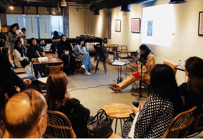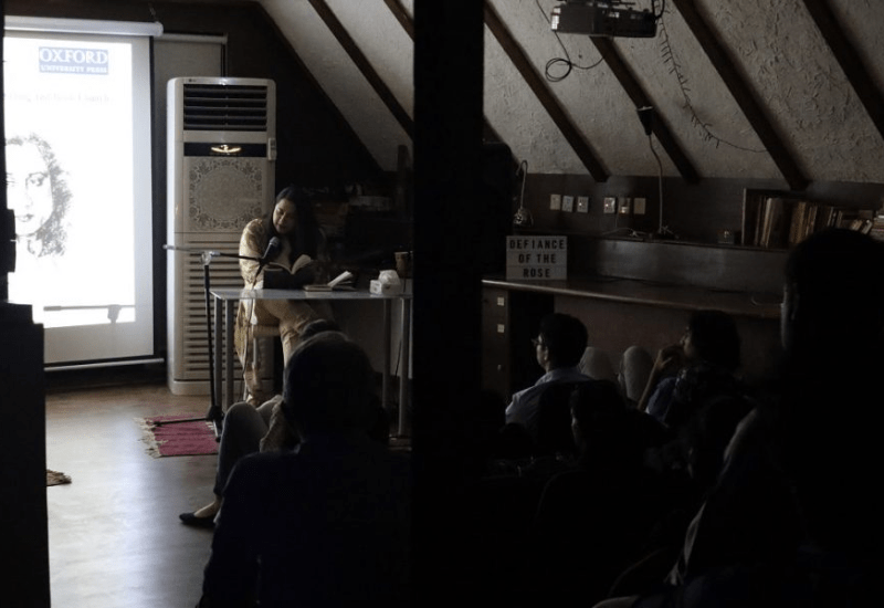 Talk with Gwen Bessou, organizer of the Book Club at the French Consulate Jeddah. Readings of selected poems from ‘Defiance of the Rose’ translated into French.